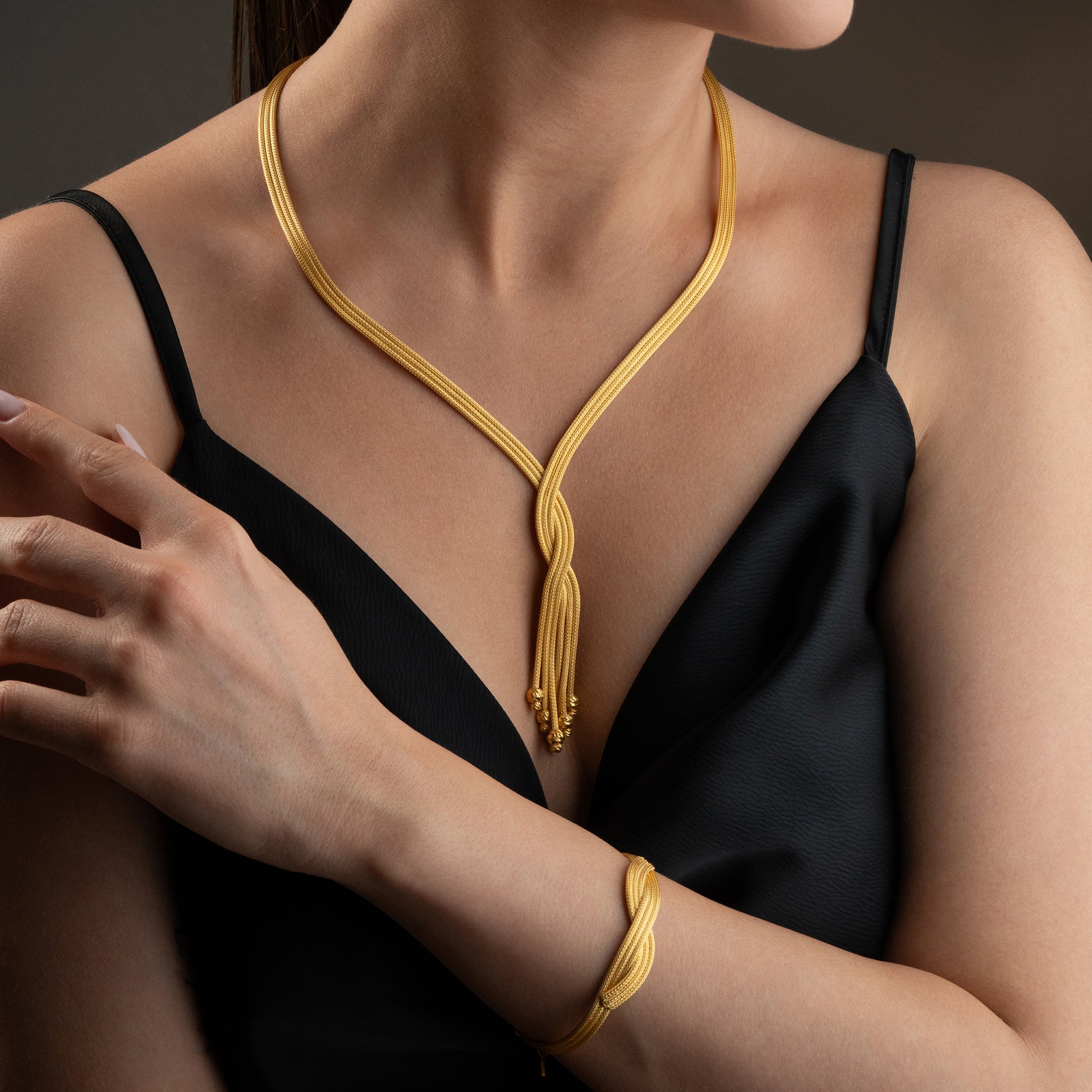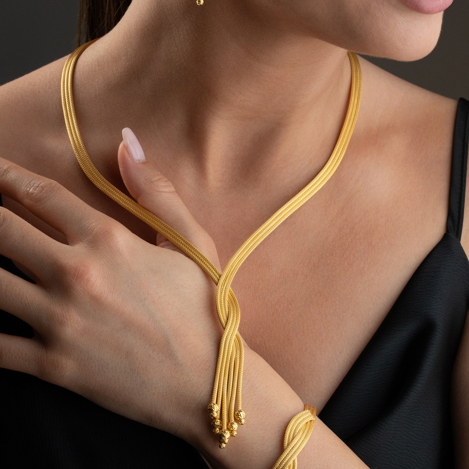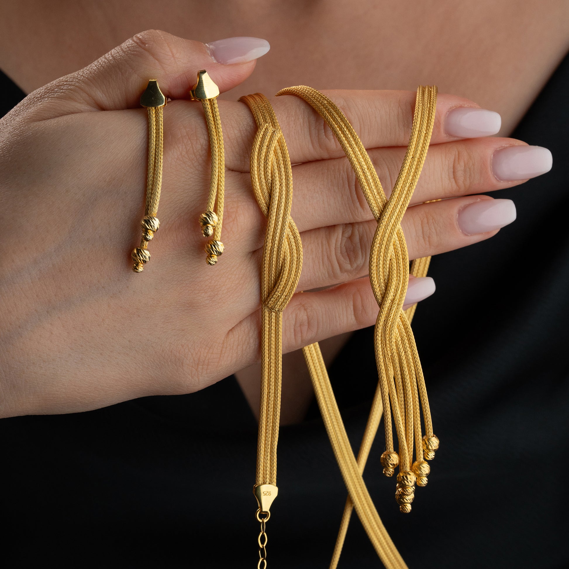 Gold Harmony 925 Ayar Gümüş Örgü Takı Seti