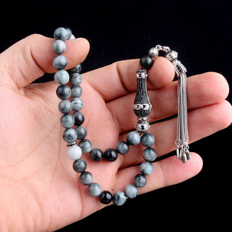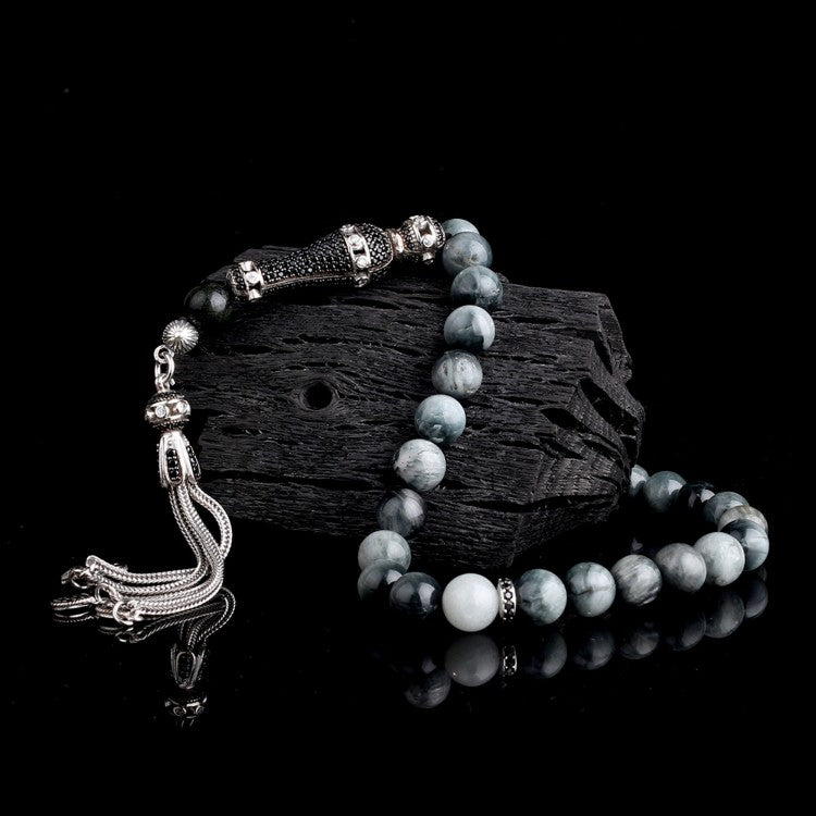 Tesbih - Gebetskette mit Tigerauge & 925er Silber Quaste