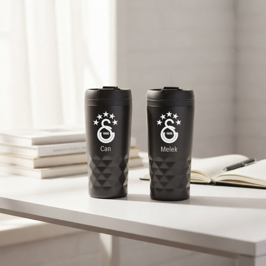 Doppelwandige Edelstahl-Thermoskanne mit Schraubverschluss / Trinkbecher und praktischem Ausgießsystem mit Druckverschluss.