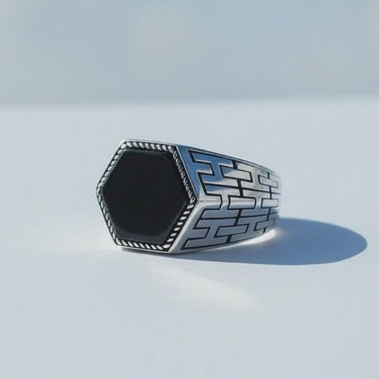 Herrenring aus Silber mit schwarzem Onyxstein