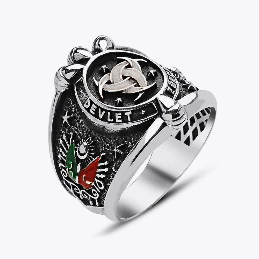 Personalized Gokturkish Written Bozkurt Silver Ring