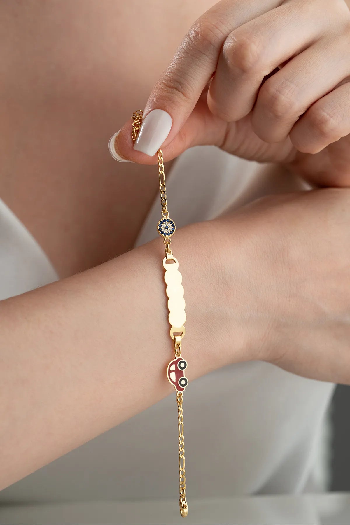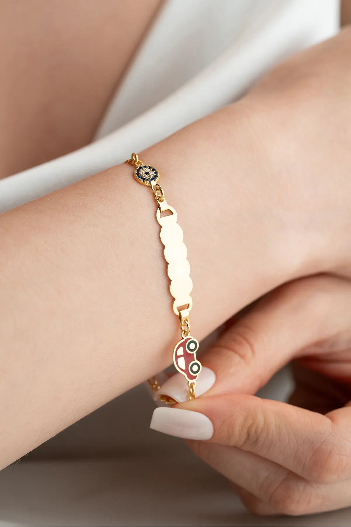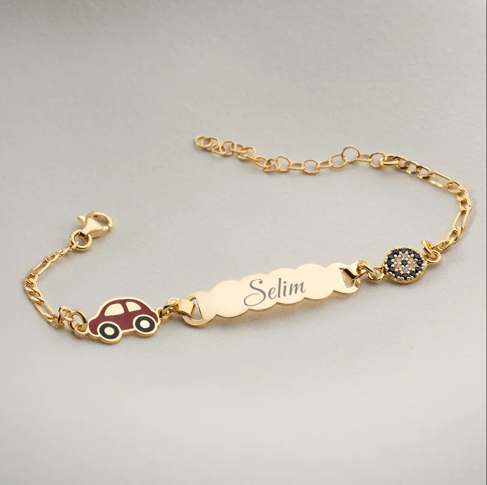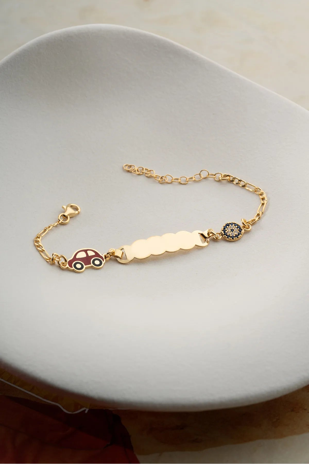 925 sterling silver children's bracelet decorated with a cute car figure and with a name that can be written on it.