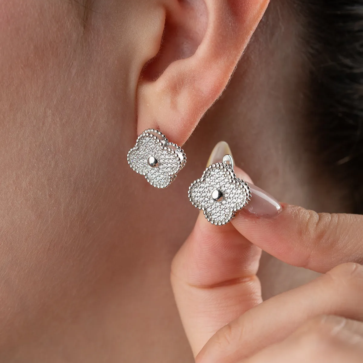 ✓ Clover model with zircon stone decoration