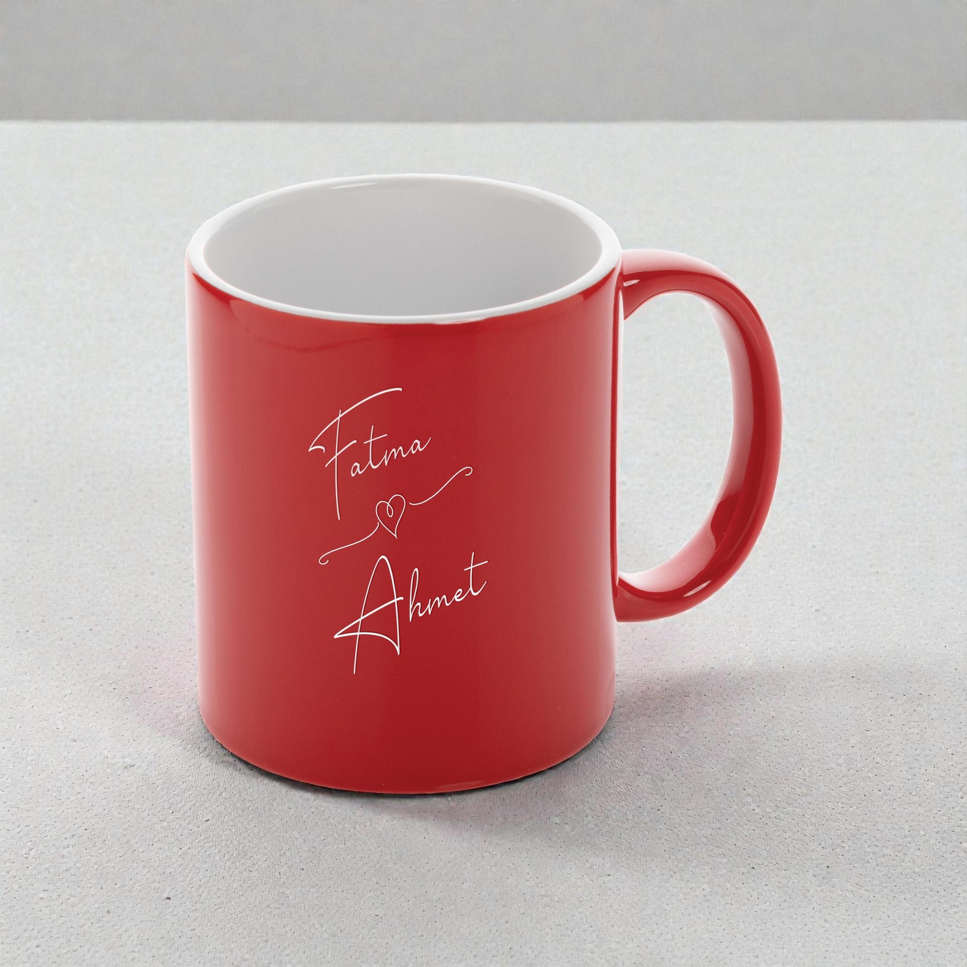 Sevdiklerinizin ismine özel, kalp detaylı romantik kırmızı kupa!