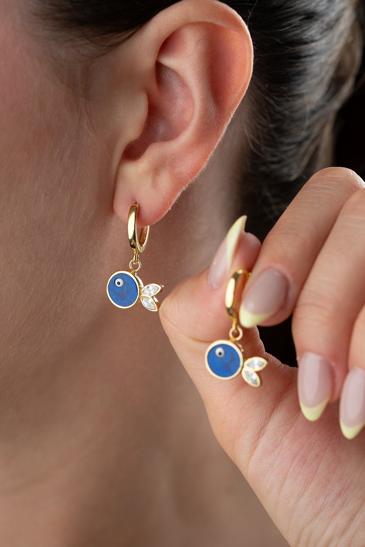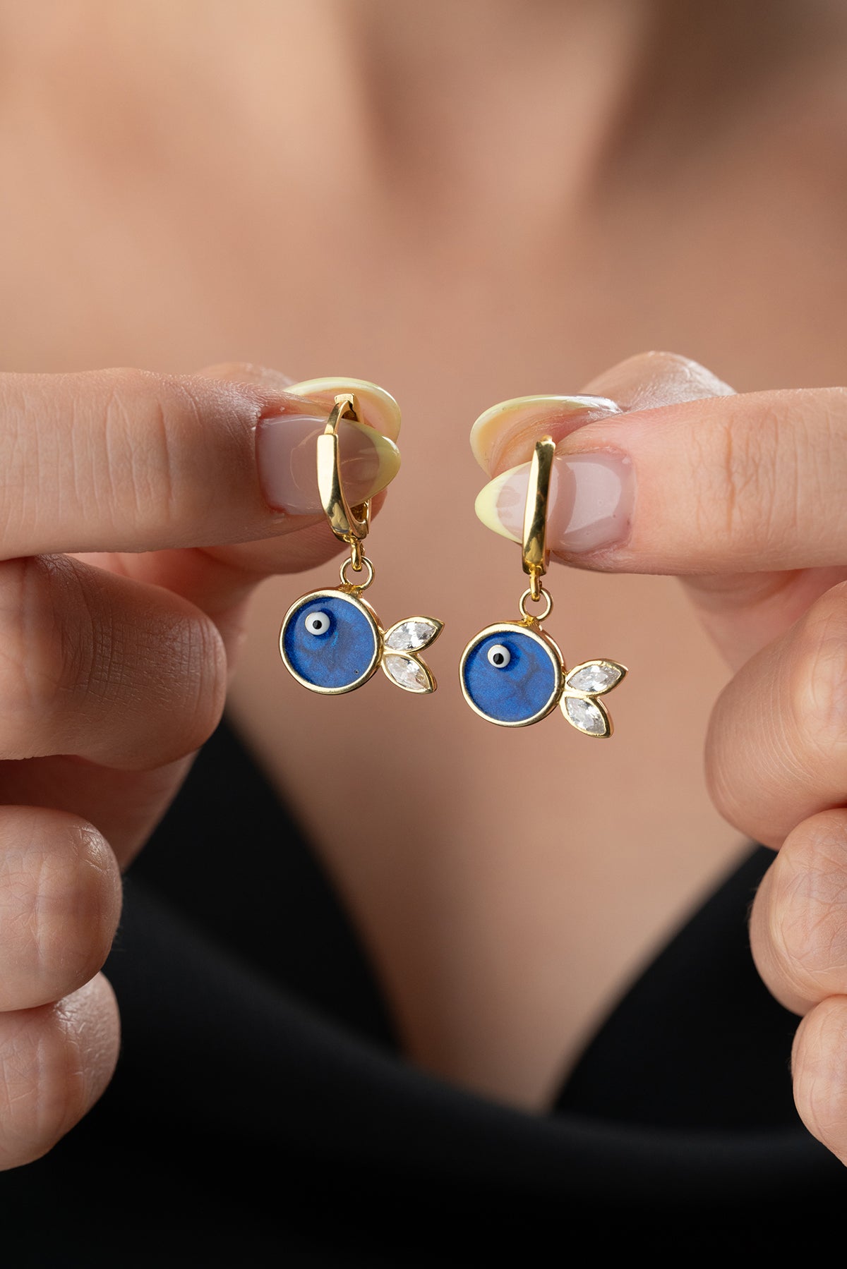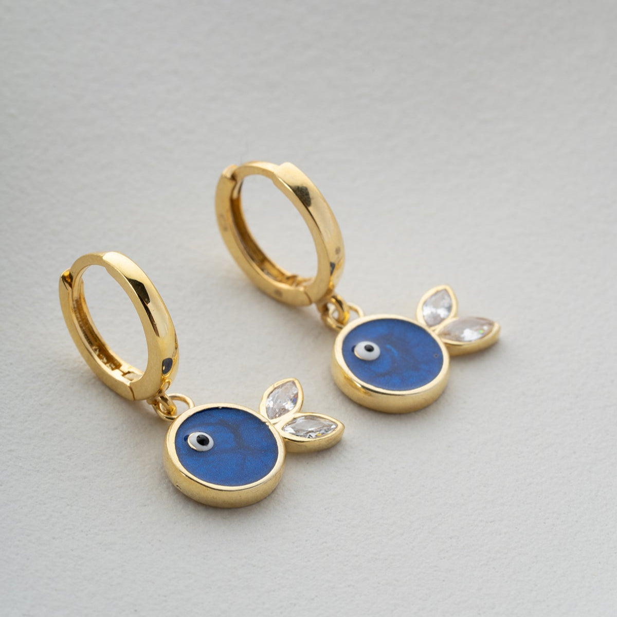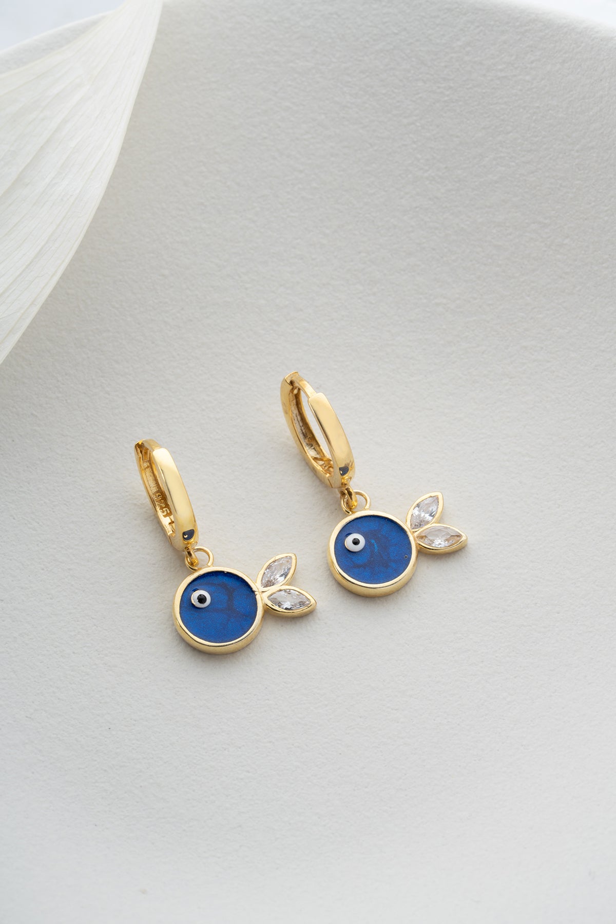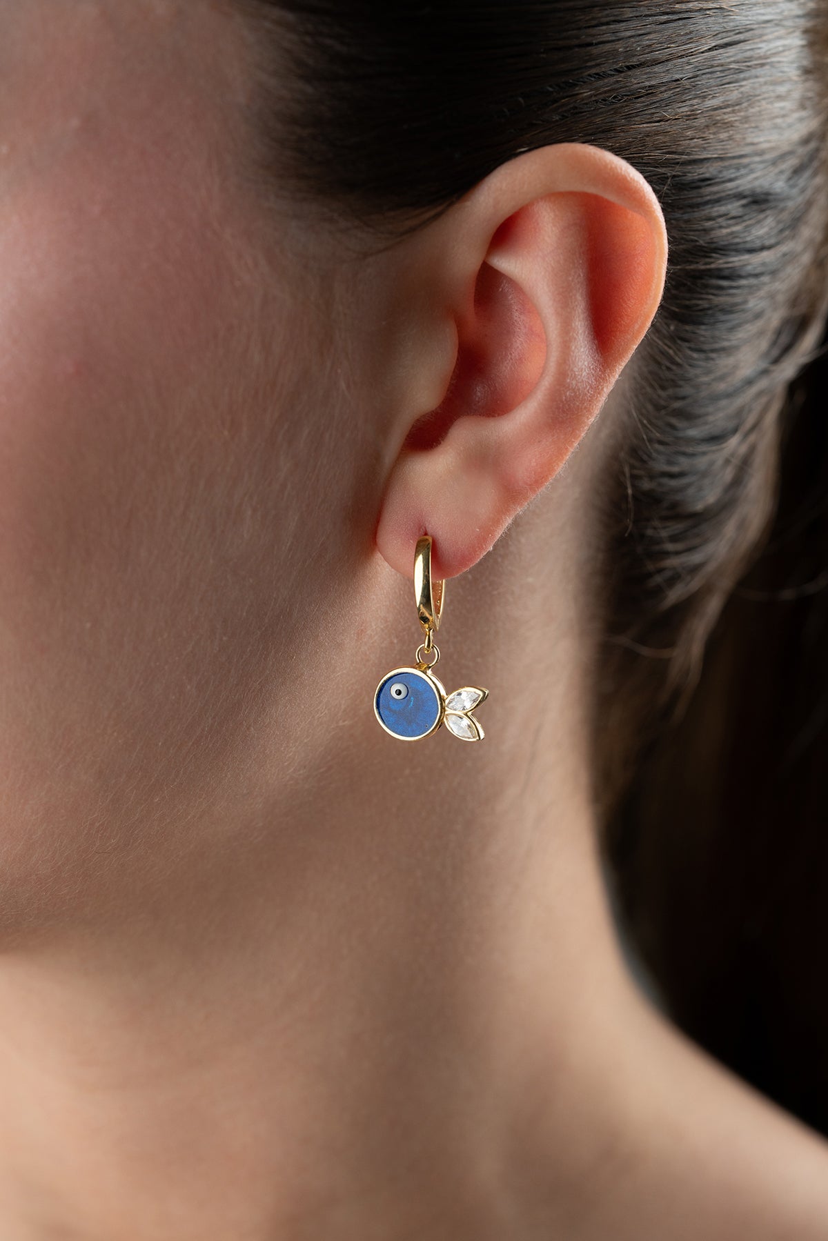 Marbliss Midnight Blue Drop Earrings bring graceful motion and bold elegance together. Featuring a deep blue fish design with zirconia and gold-plated hoop, it’s the perfect mix of playful and refined.