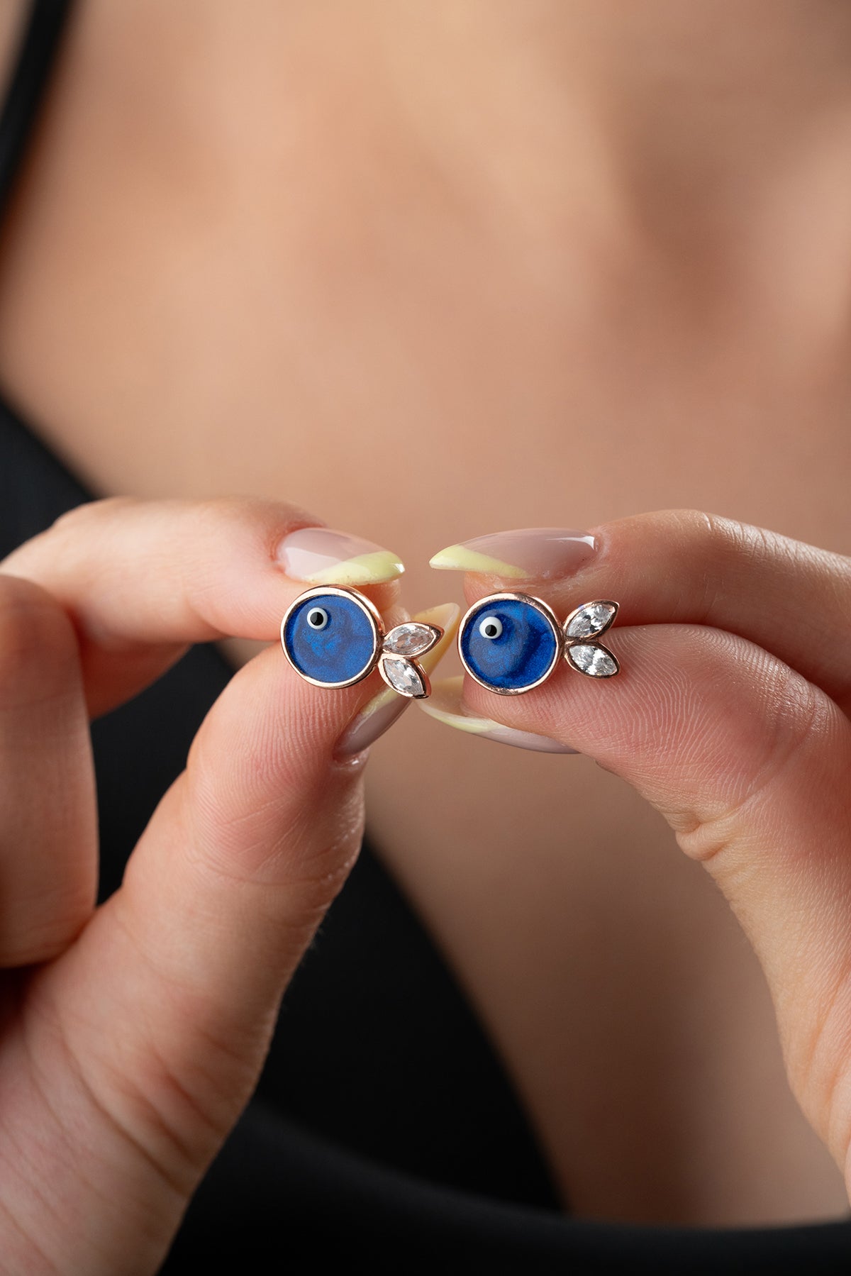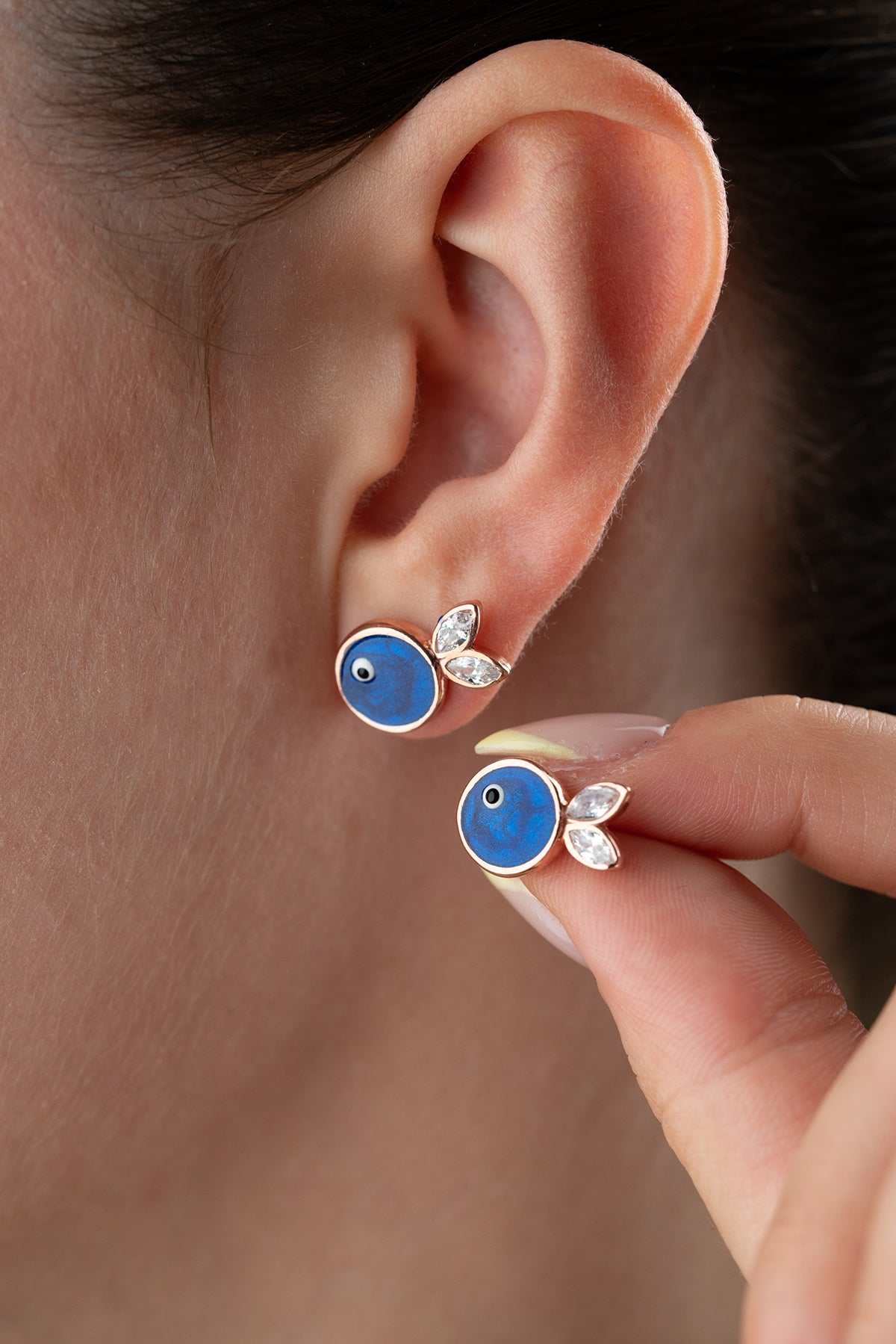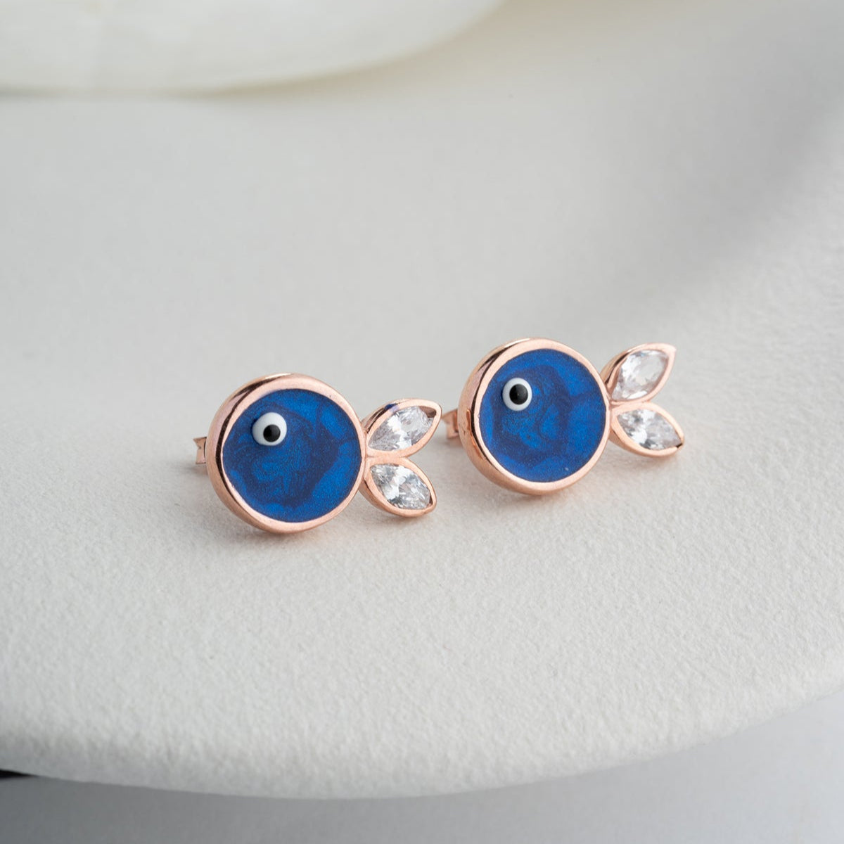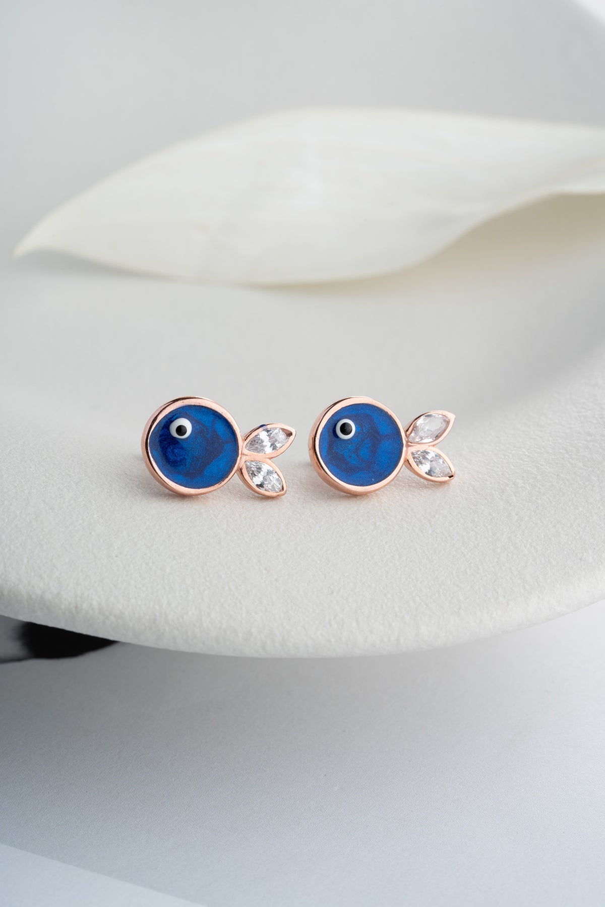 Marbliss Midnight Blue Earrings reflect the mystery of the sea and the serenity of the night with their deep blue tones. Their minimalist fish figure and sparkling zircon accents offer a sophisticated summer elegance.