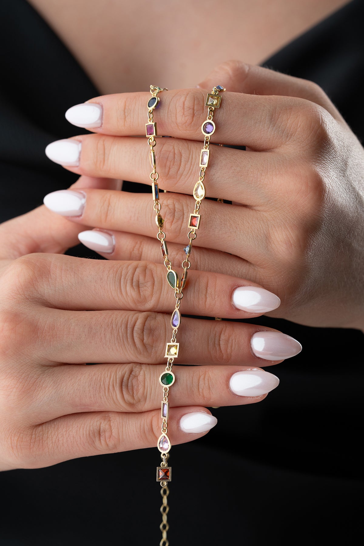 A Y-shaped necklace adorned with colorful stones, exclusive to the Serenay Collection. It adds elegance and energy to your style.