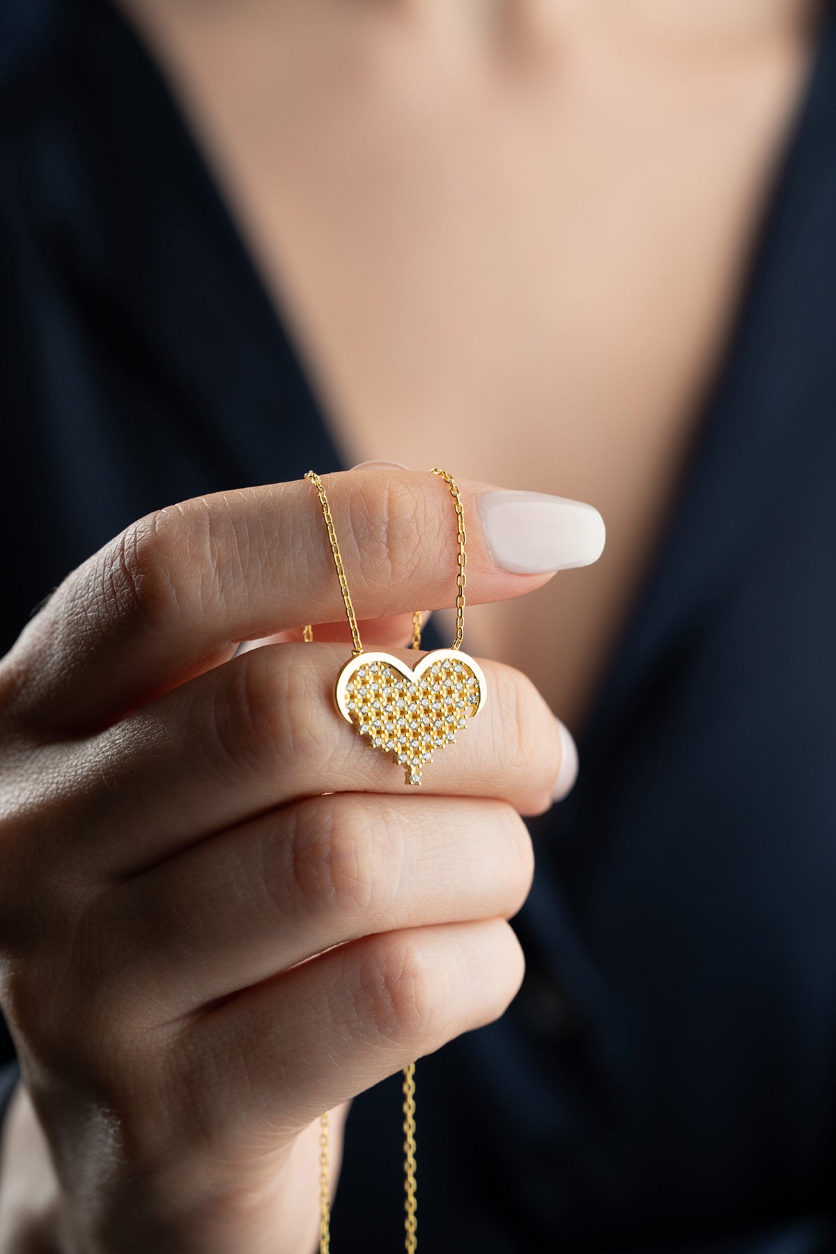 A 925 sterling silver necklace with an elegant heart design and stone details. A stylish accessory that symbolizes your love.