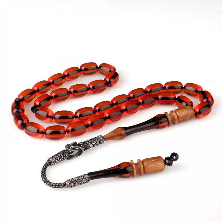 Kazaz Püsküllü Kuka İmameli Gümüş Sıkma Kehribar Tesbih (1000 Ayar)