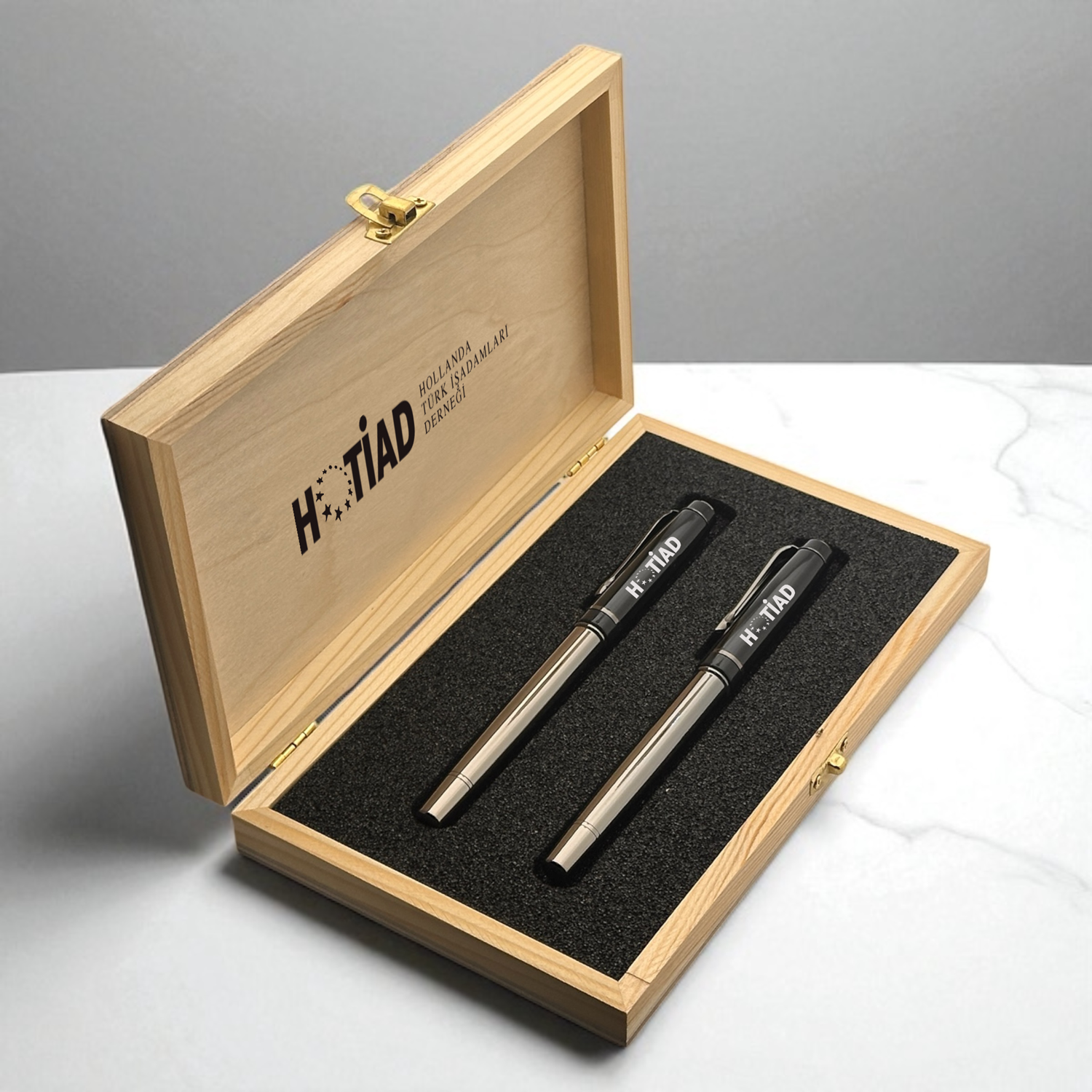 Kişiye özel tükenmez ve roller kalemlerin yanı sıra, üzerine not yazılabilen ahşap kutularla, termos bardaklar, deri cüzdanlarla yeni yıl hediyelerinizi birlikte tasarlayalım. Daha fazla bilgi için lütfen bizimle iletişime geçin.