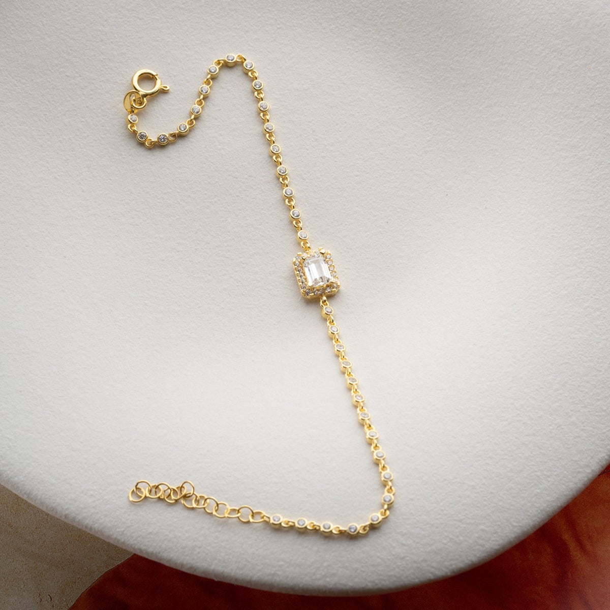 Cet élégant bracelet en argent sterling 925 orné de pierres baguettes scintille de détails plaqués or. Alliant élégance et sophistication, ce modèle unique est l'accessoire idéal au quotidien comme pour les grandes occasions.