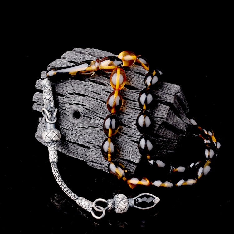 1000 Ayar Gümüş Püsküllü Süzme Ateş Kehribar Tesbih