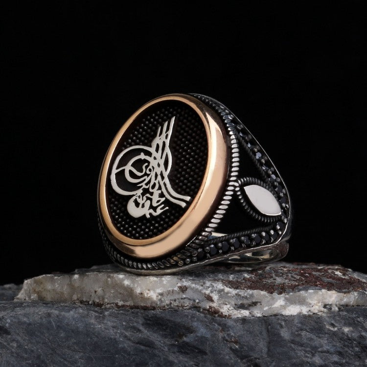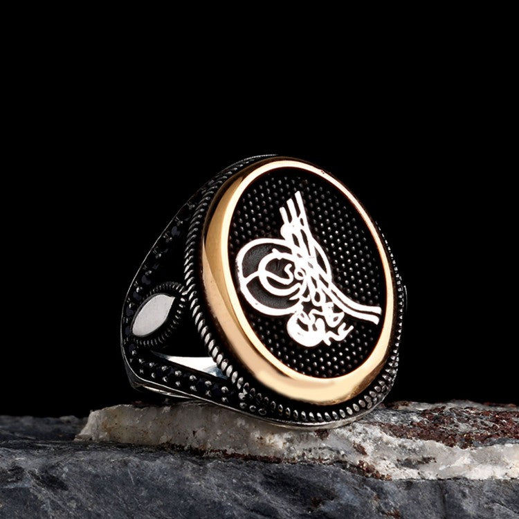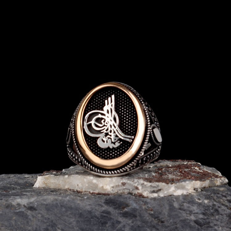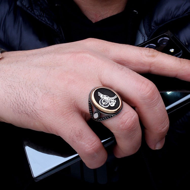 Şık ve anlamlı Osmanlı tuğrası motifli 925 ayar gümüş erkek yüzük.