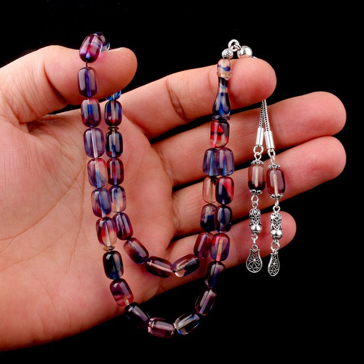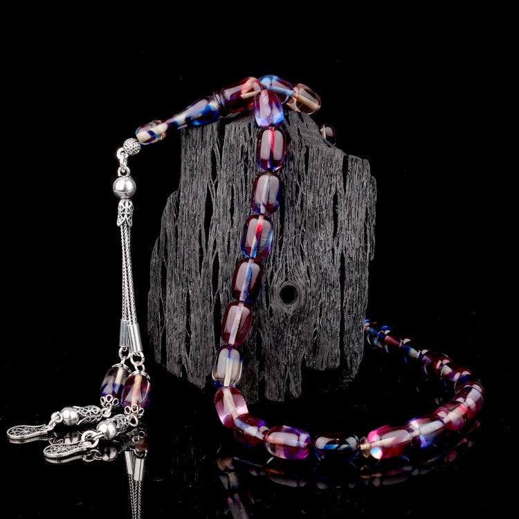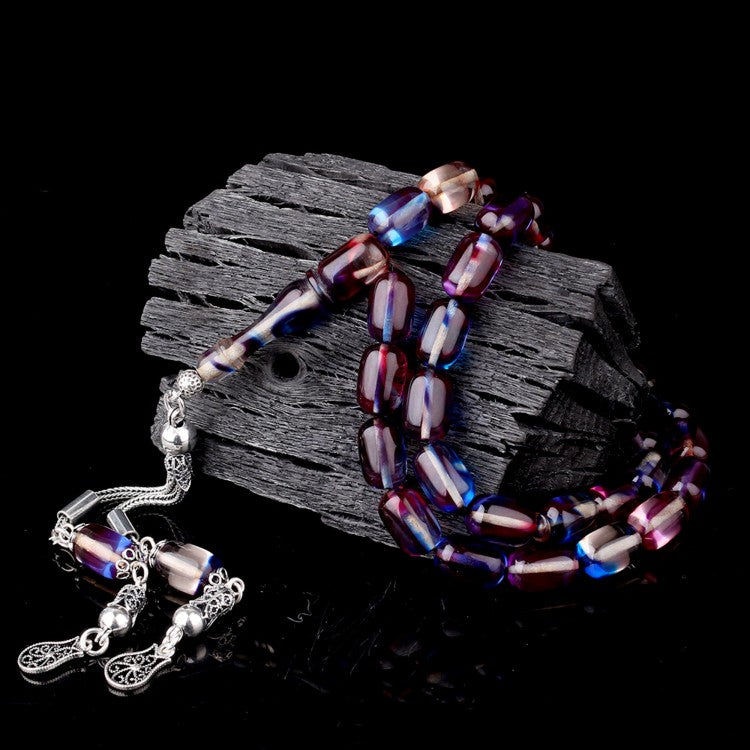 Canlı renk geçişlerine sahip kapsül kesim süzme model ateş kehribar tesbih.