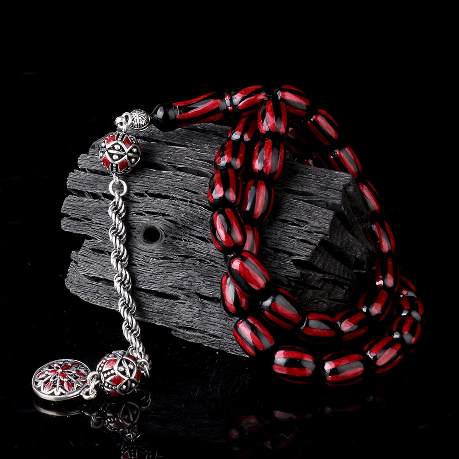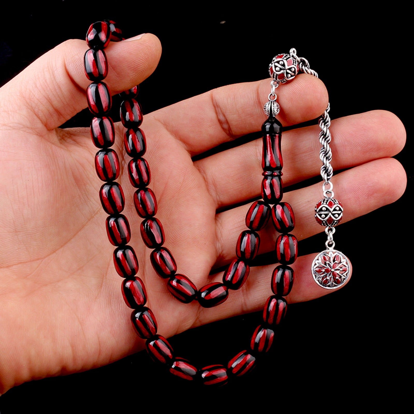 925 Ayar Gümüş Püsküllü Mineli Ateş Kehribar Tesbih