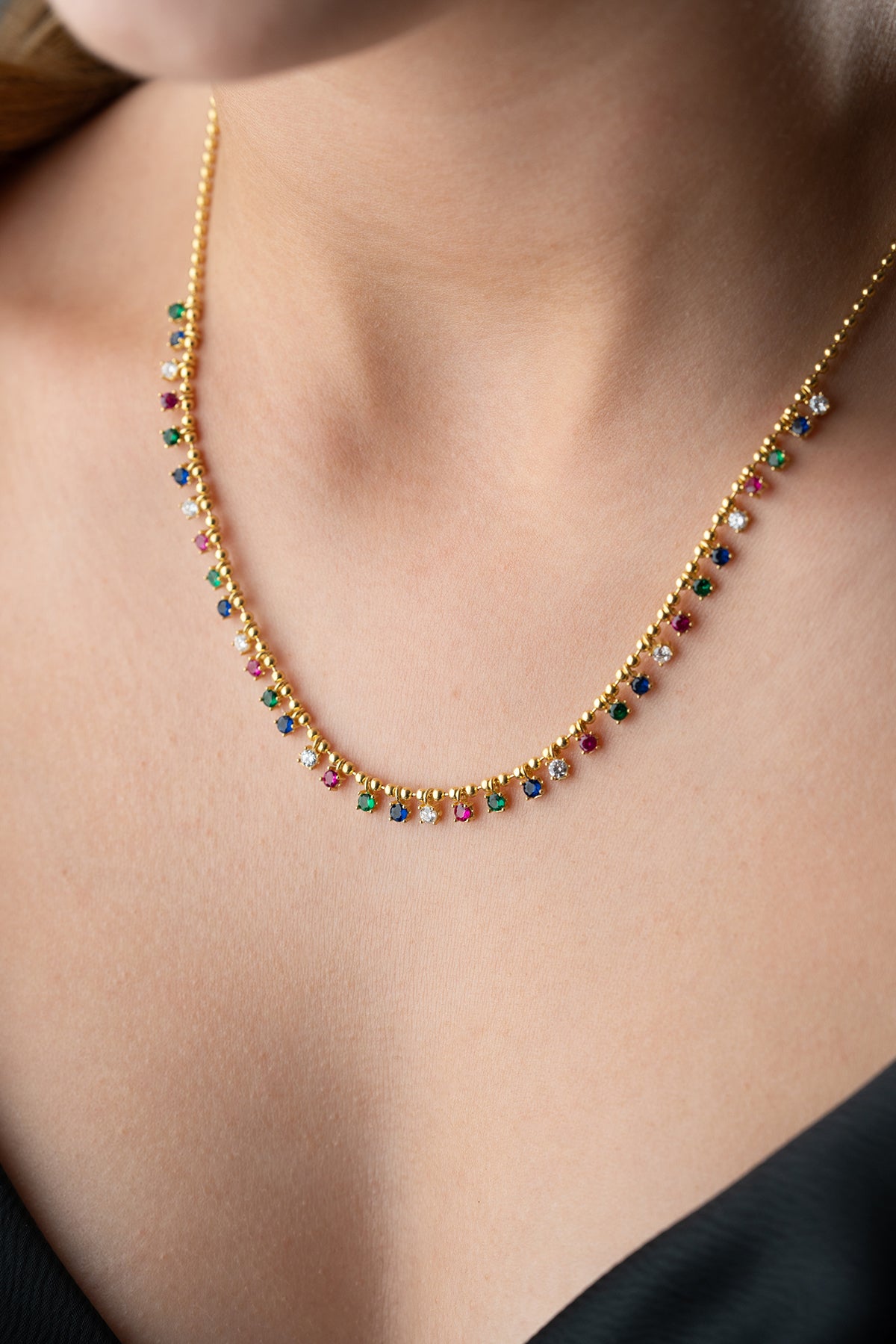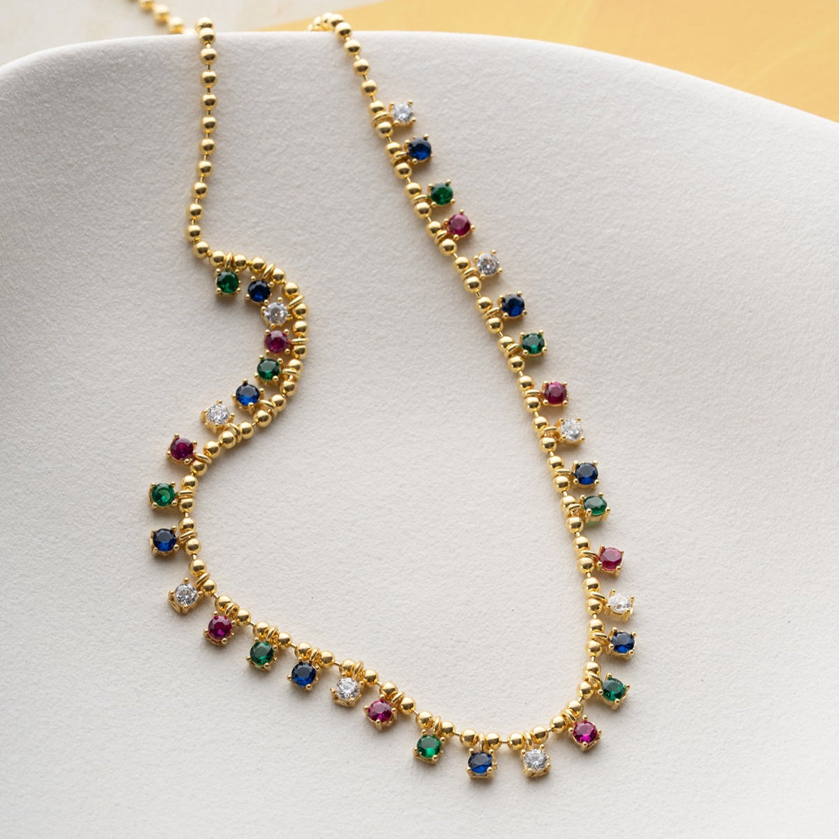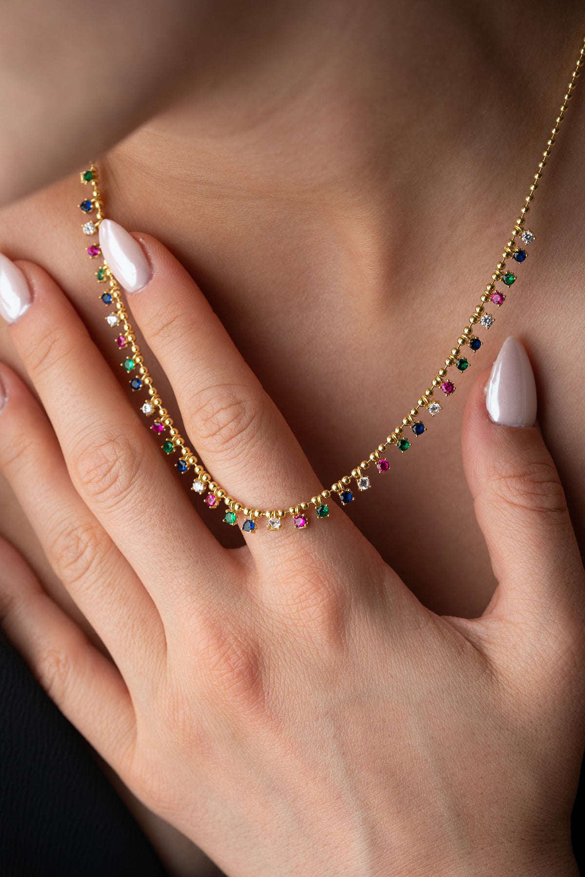 Altın kaplama zincir ve rengarenk taşlarla tasarlanan Serenay kolye, ışıltılı ve zarif görünümüyle stilinizi tamamlar. Günlük kullanımda ve özel günlerde fark yaratır.