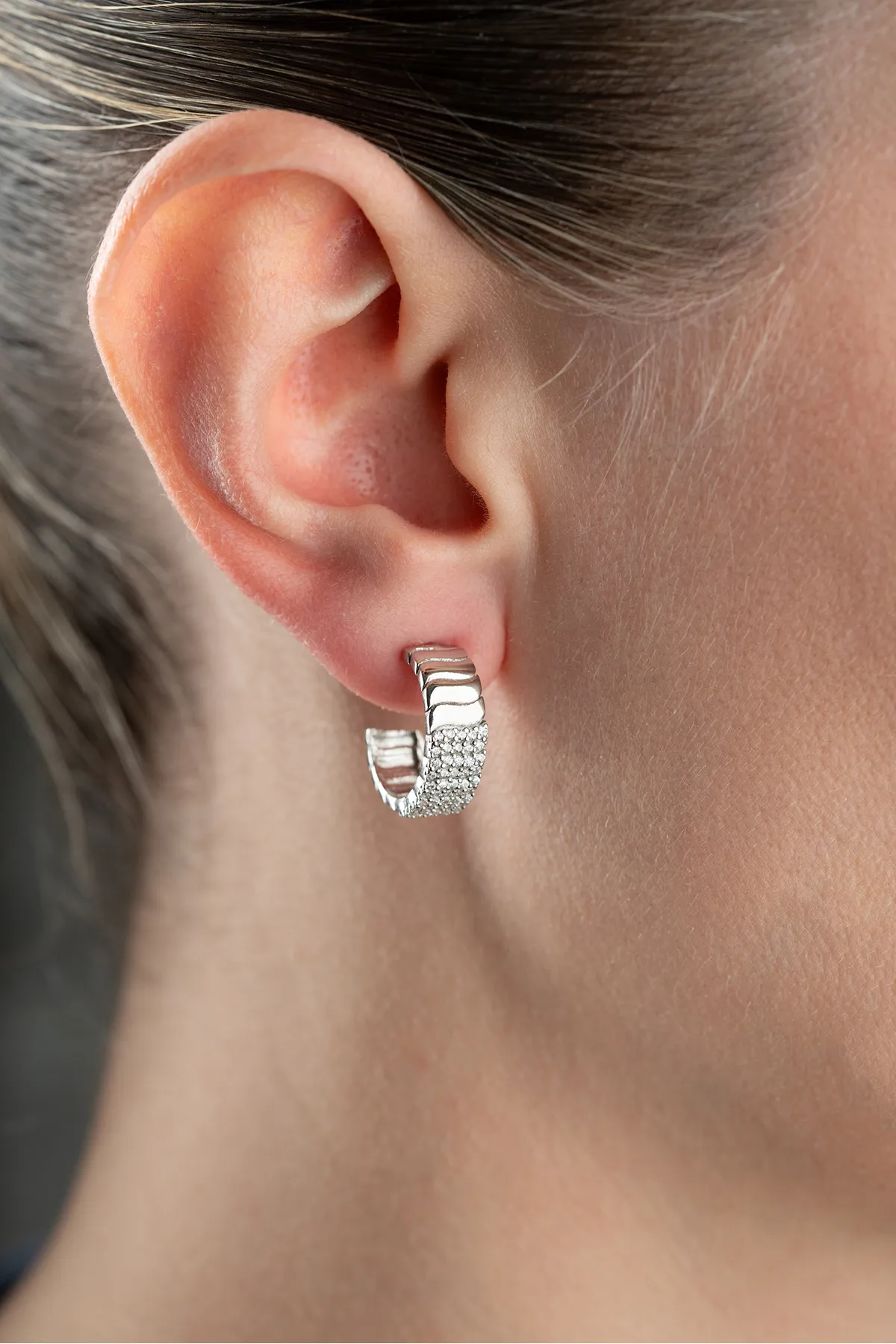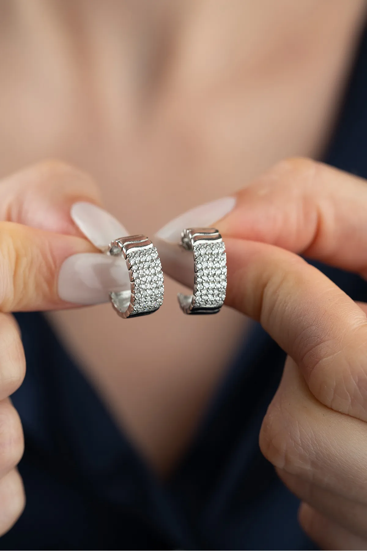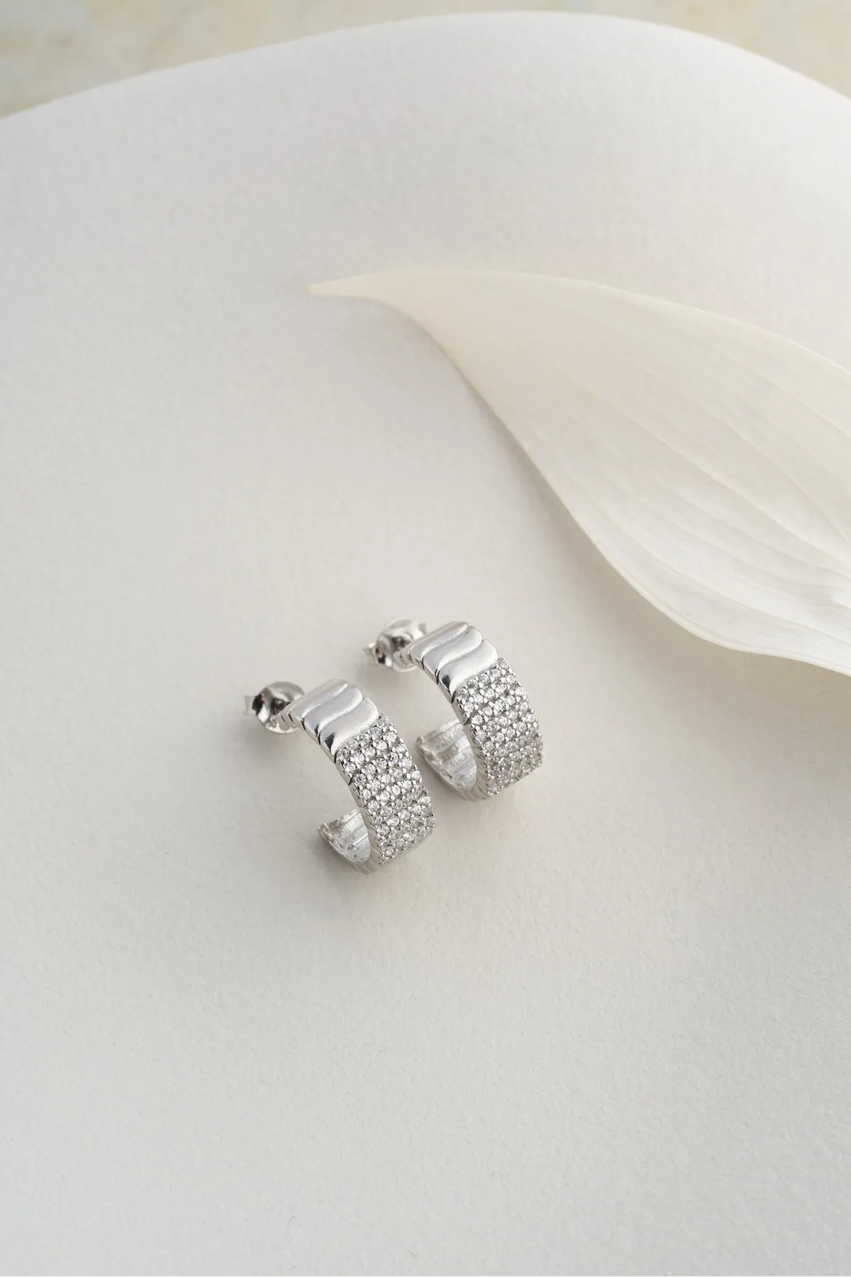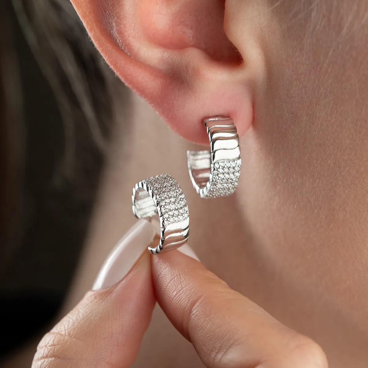 925 Ayar Gümüş Taş İşlemeli Kıvrımlı Halka Küpe