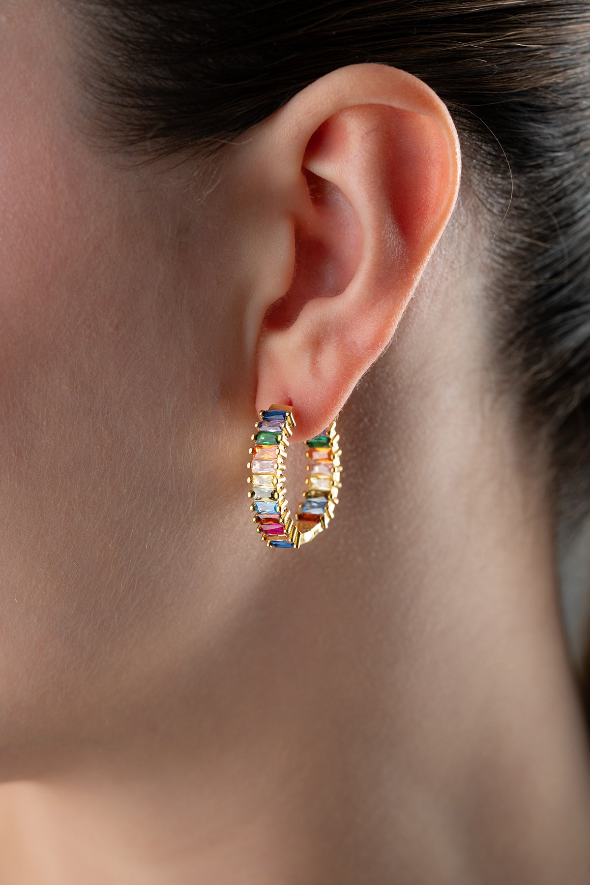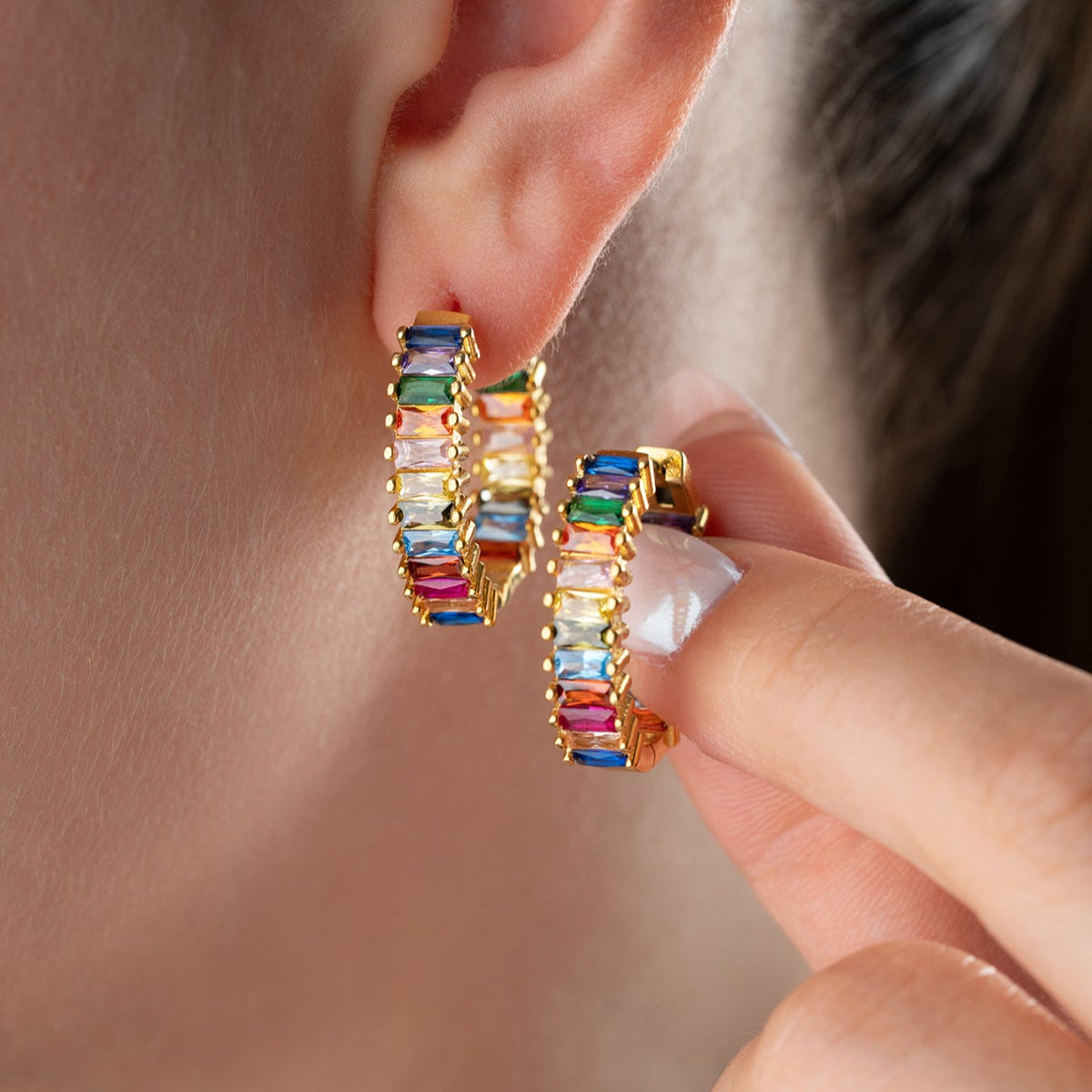 Canlı renkli taşlarla tasarlanmış Aurora halka küpe, modern ve enerjik tarzıyla ışıltınızı yansıtır.