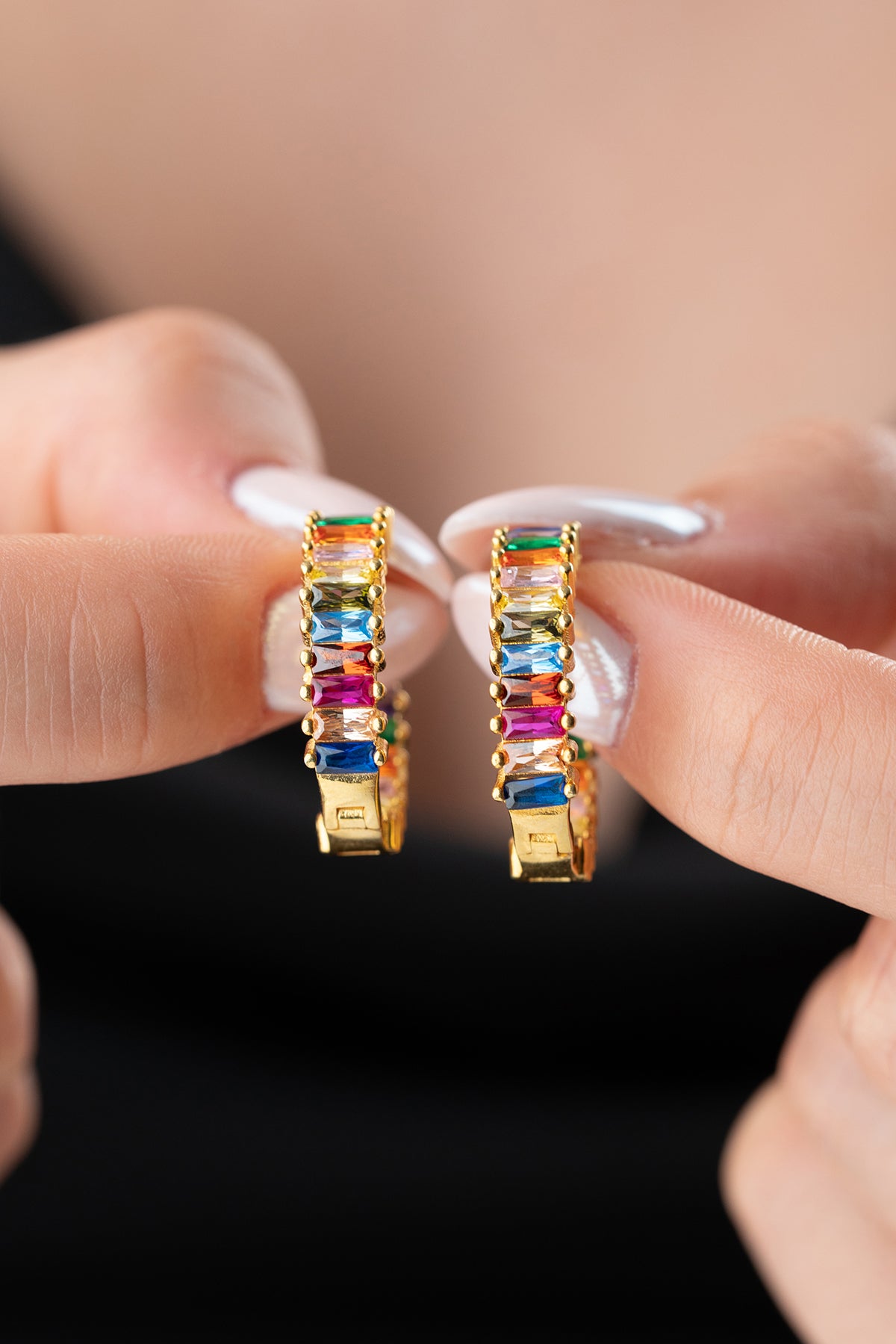 Aurora Küpe – 925 Ayar Gümüş – Renkli Taşlı Halka