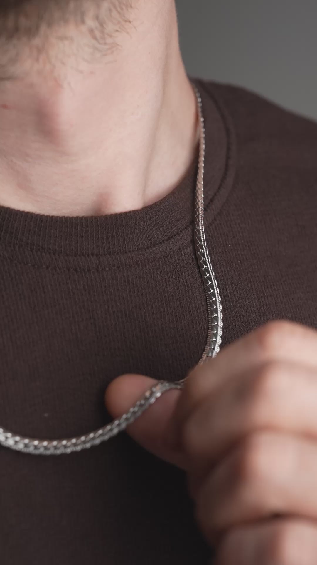 Core – Minimal Zincir Kolye, sade ve güçlü tasarımıyla modern erkek stilini tamamlayan, çift sıra detaylı dayanıklı çelik kolyedir.