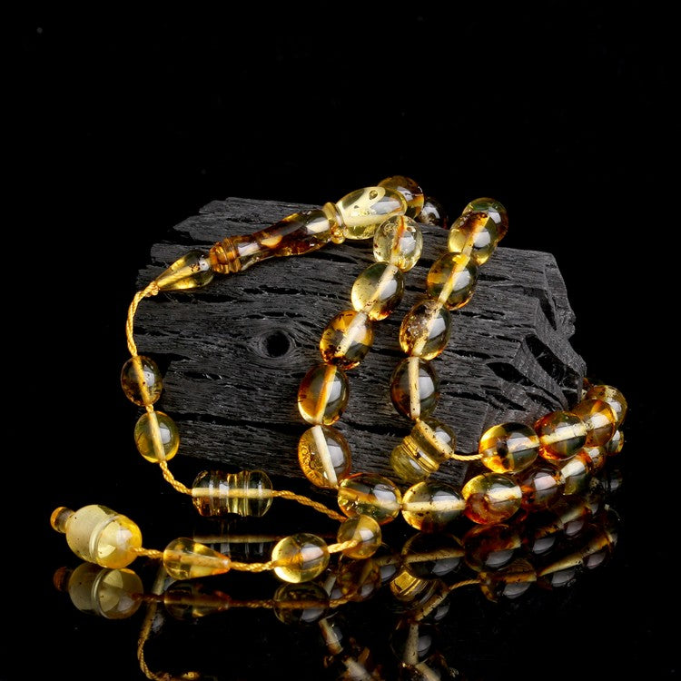 Fosilli Damla Kehribar Tesbih