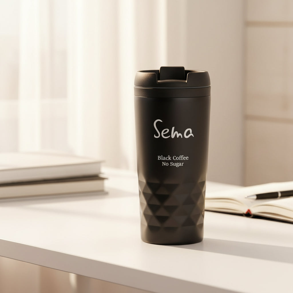 Özel isim baskılı, şık ve pratik termos bardak.