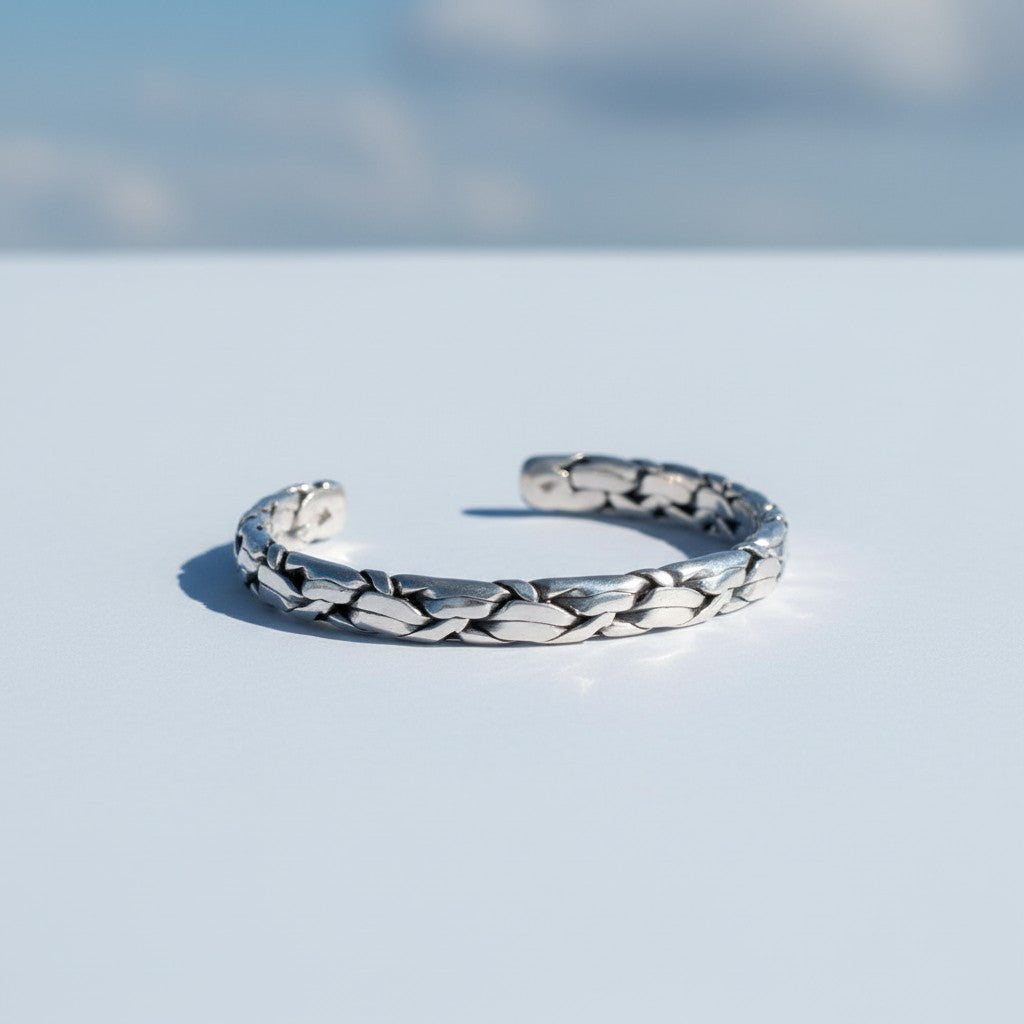Güçlü duruşuyla öne çıkan kral zincir motifiyle tasarlanmış, modern ve tok yapılı 925 ayar gümüş erkek bileklik.