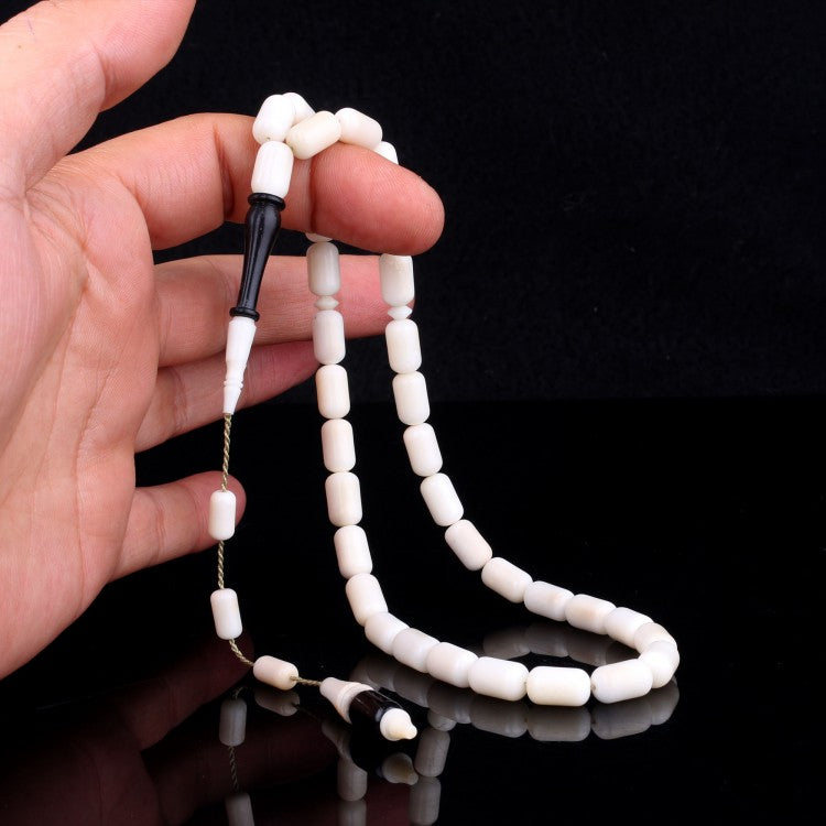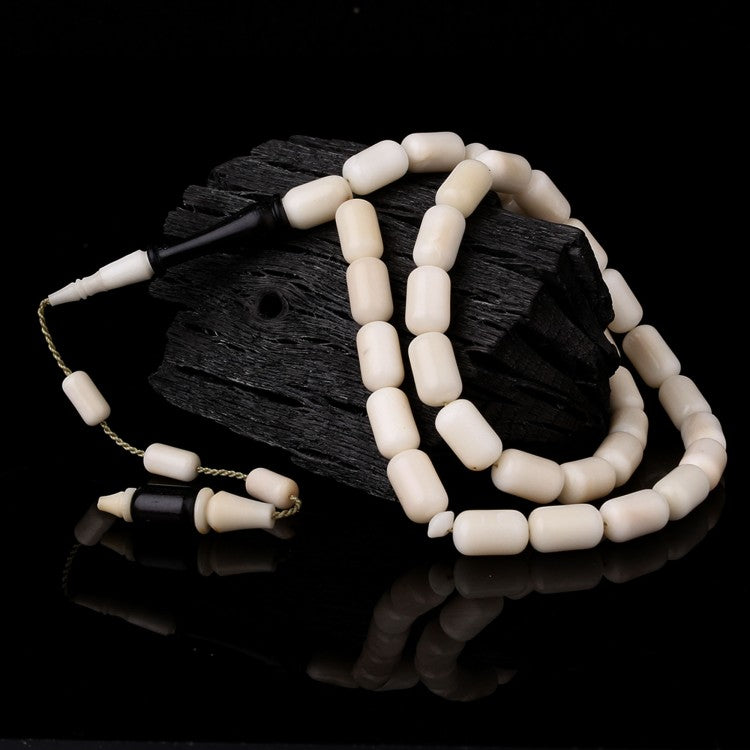 Bitkisel fildişi (narçıl) ve abanoz ağacından üretilmiş, sistemli dizilimli kapsül kesim özel tesbih.