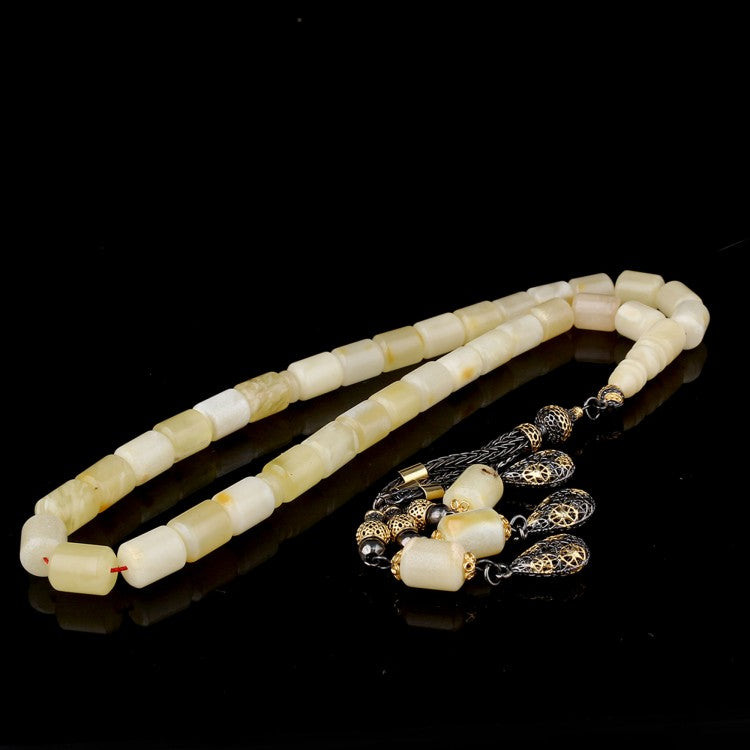 925 Ayar Gümüş Püsküllü Kesme Model Damla Kehribar Tesbih
