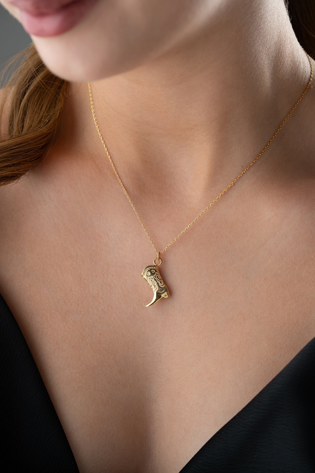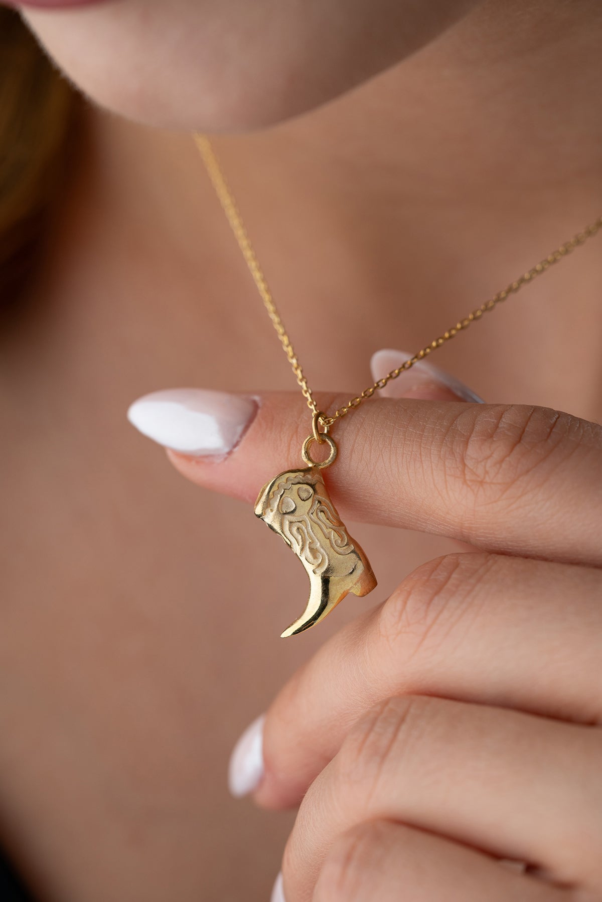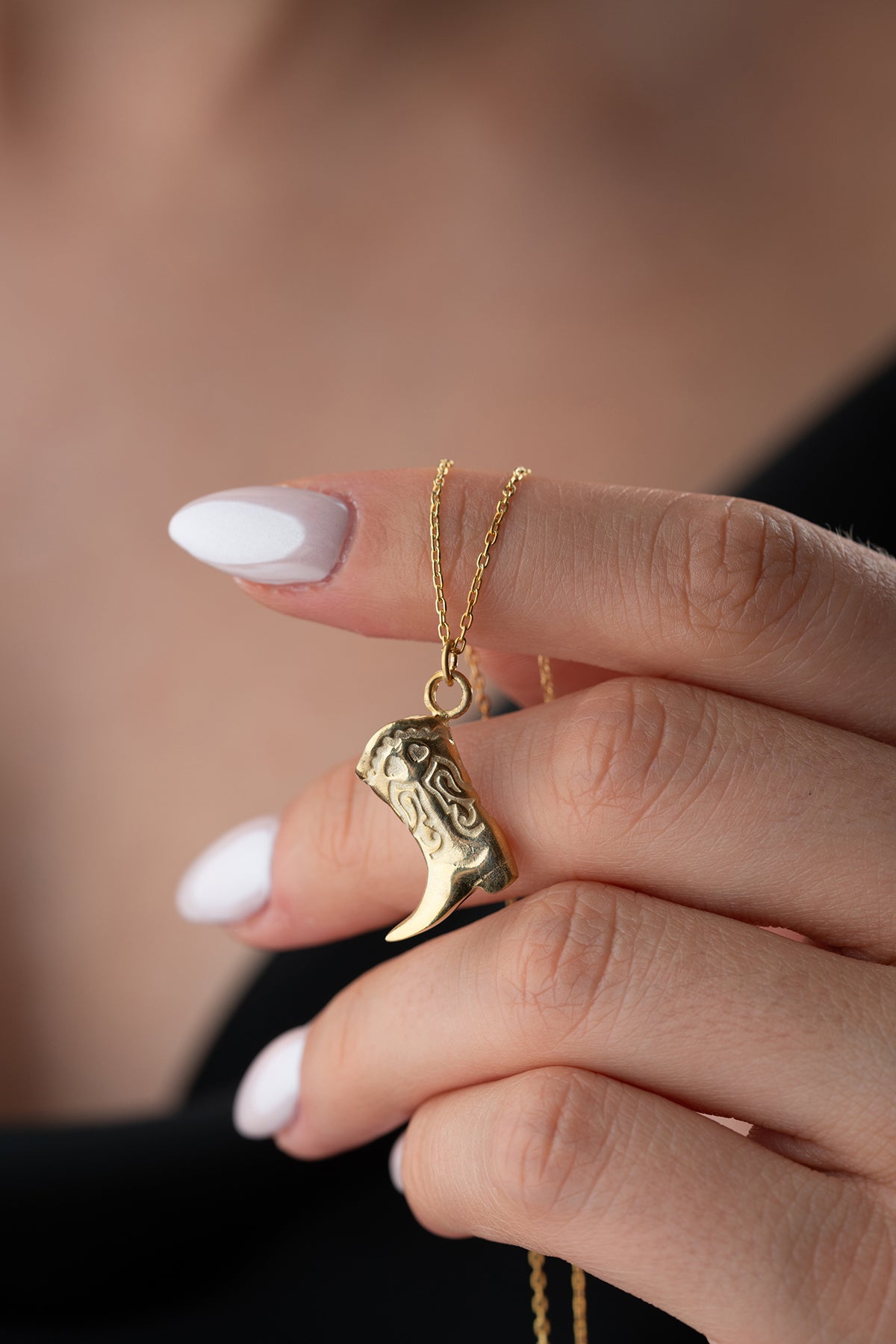 Kovboy çizme figürlü, detaylı işçiliğe sahip 925 ayar gümüş kolye. Tarzını yansıtan özgün bir tasarım.