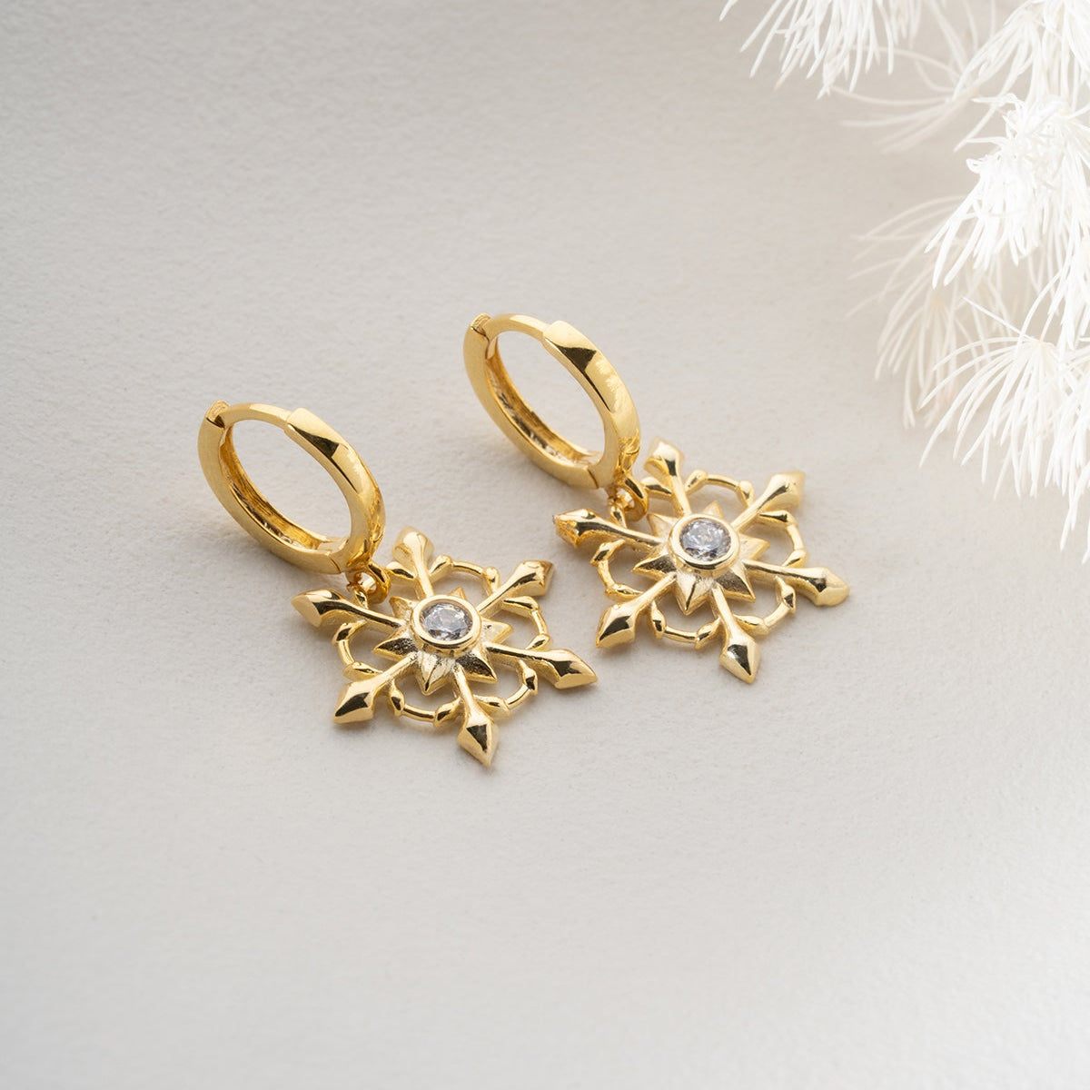 Işıltılı taşlı yıldız figürüyle süslenmiş modern ve zarif halka küpe modeli.